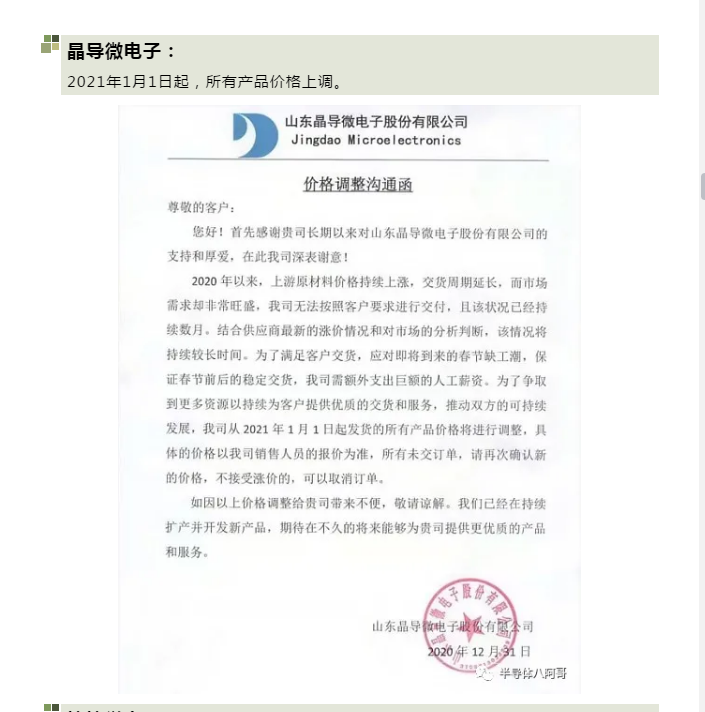 据上游业内分析,2021年上半年半导体材料货源会一直很紧张,许多行业到无芯片可用的地步,所以今年上半年价格还会持续上涨。